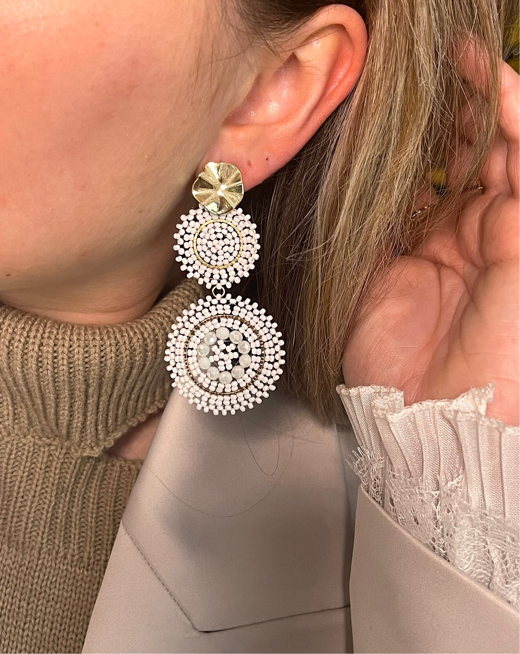 Hoe leuk zijn deze oorbellen ?!!De SUNFLOWER oorbellen zijn verkrijgbaar in het beige/bruin & in het wit. Echt heerlijke kleurtjes voor het voorjaar en de zomer.