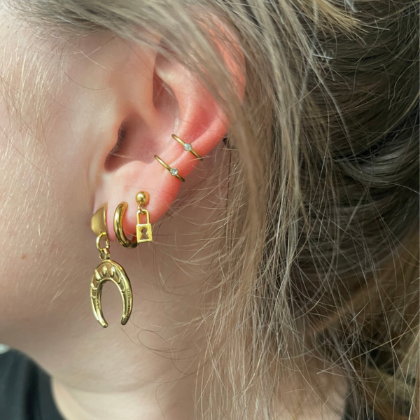 Dé trend van dit moment: ear cuffs! Je hebt er geen gaatjes voor nodig, schuif ze gewoon over de rand van je oorschelp en je hebt een echte eyecatcher te pakken. Combineer de earcuff met een paar goudkleurige oorbellen voor een prachtige oorparty en je outfit is compleet.