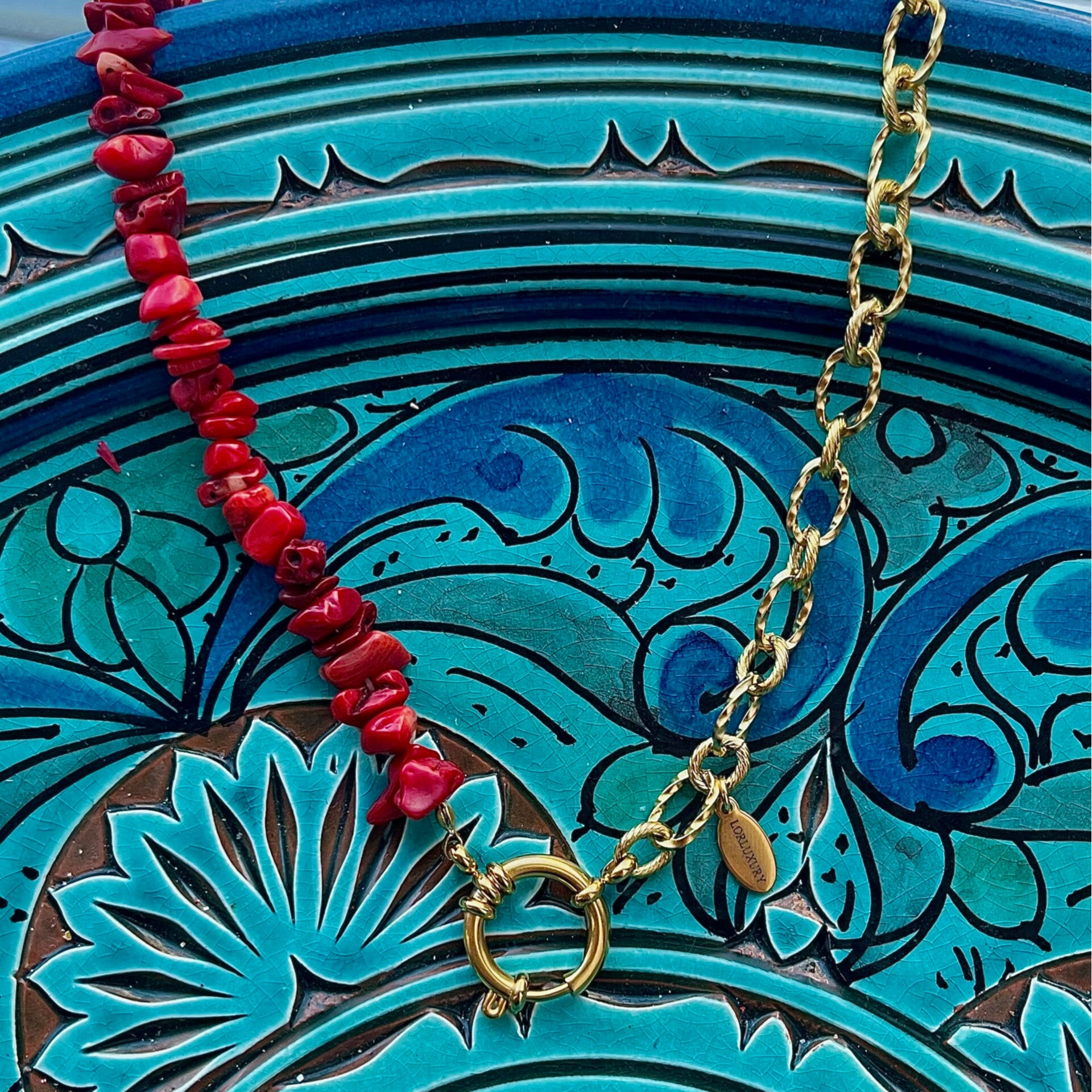 Rood is de trendy kleur van dit moment en daarom maak jij met deze rode natuursteen ketting jou everyday look helemaal af!