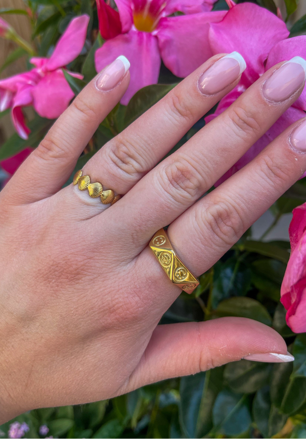 De ring heeft een schelpjes vorm rondom en is verstelbaar in maat. Doordat de ring gemaakt is van stainless steel, verkleurt deze niet! Perfect voor onze Beach Babes!!~