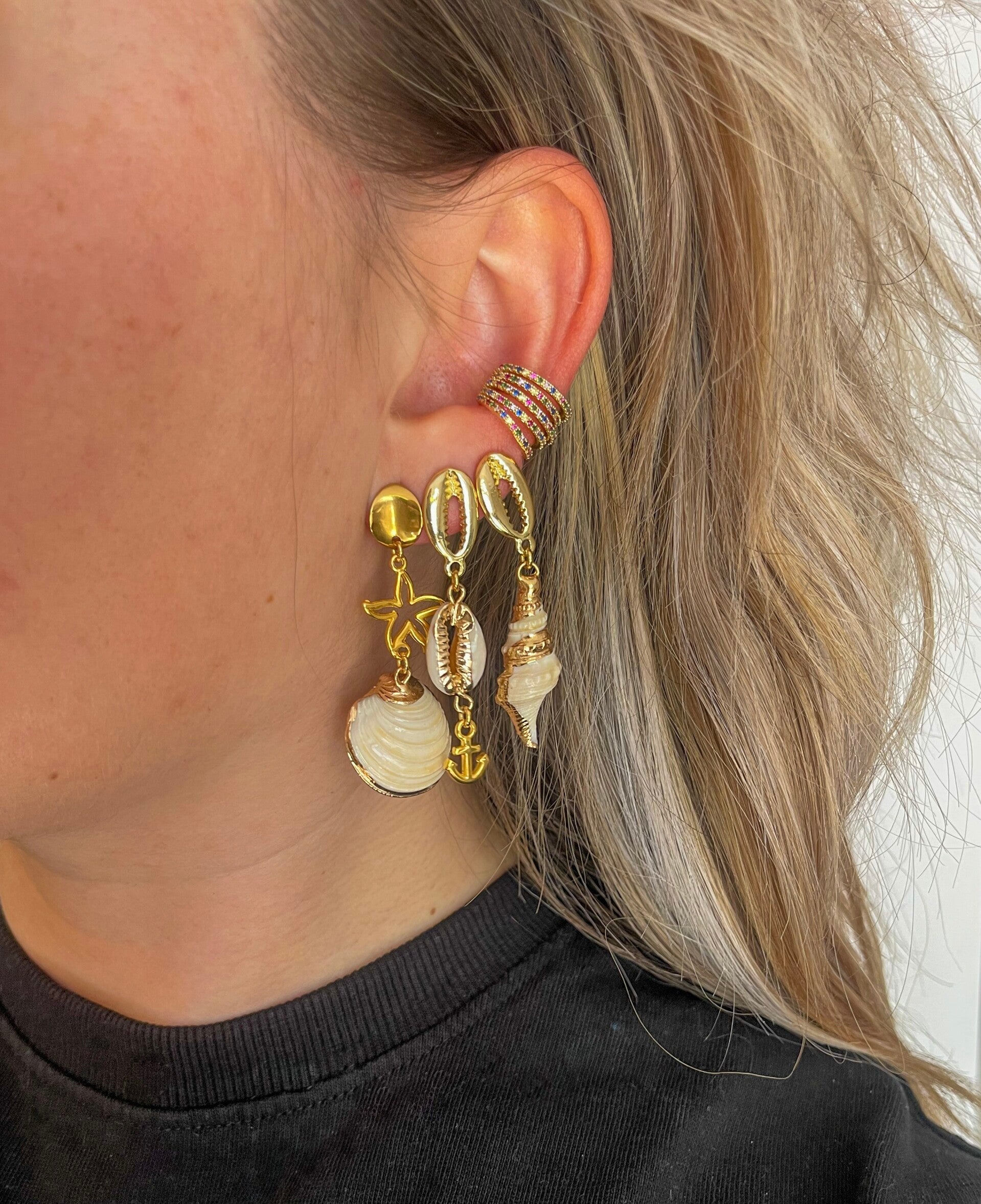 Met de sunset oorbellen steel jij de show met het heerlijke weer dit seizoen. Deze oorbellen hebben stainless steel oorstekers met daaraan heerlijke beachy vibes door de zeester bedel in combinatie met de schelp. Combineer de oorbellen met een leuke earcuff en een schelpen ketting en jou lookje is helemaal compleet.