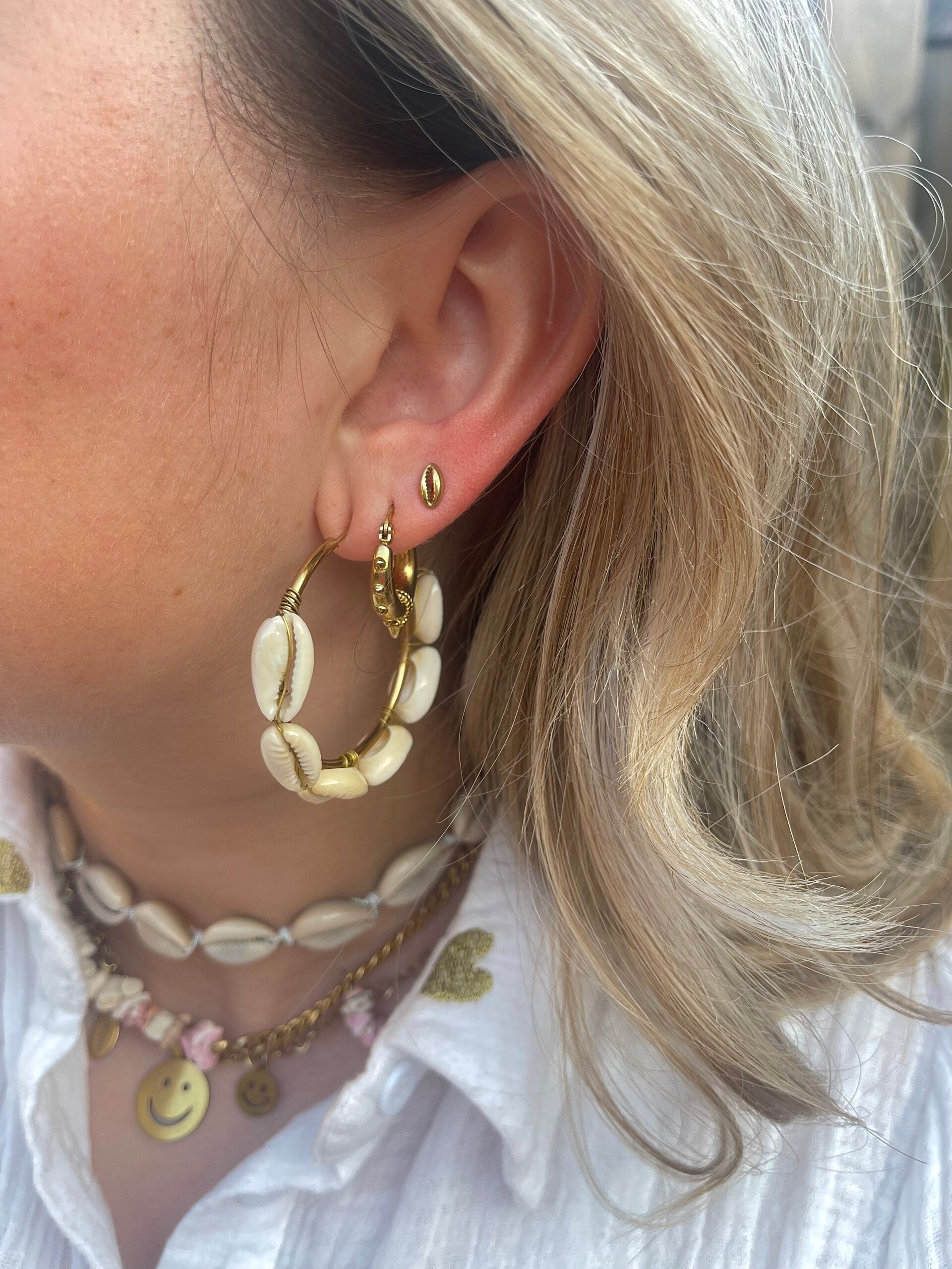 Draag de schelp oorknopjes met een wat grotere oorring, draag meerdere oorknopjes naast elkaar of combineer de schelp oorknopjes tot jou perfecte oorparty.