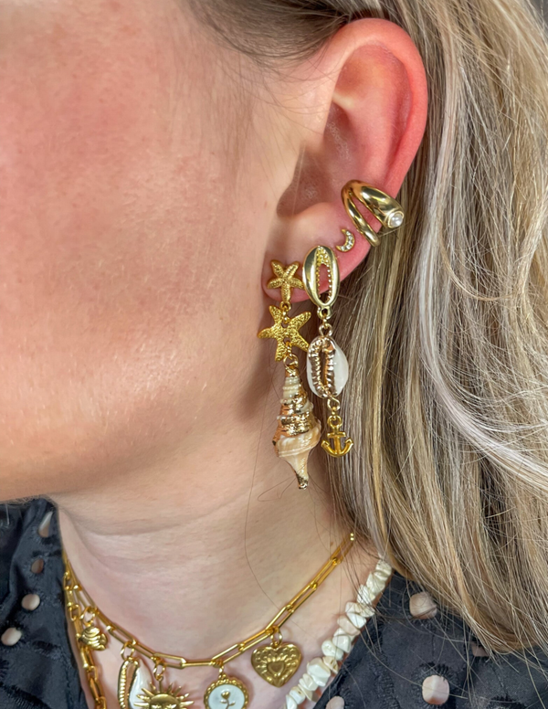 Laat je meenemen naar het strand met deze prachtige handgemaakte Starfish Shell oorbellen. De combinatie van gouden zeesterren en echte schelpen zorgt voor een unieke, zomerse look die perfect is voor elke gelegenheid – van een strandfeest tot een chique diner. De oorstekers zijn gemaakt van stainless steel materiaal en zijn dus allergie vrij!