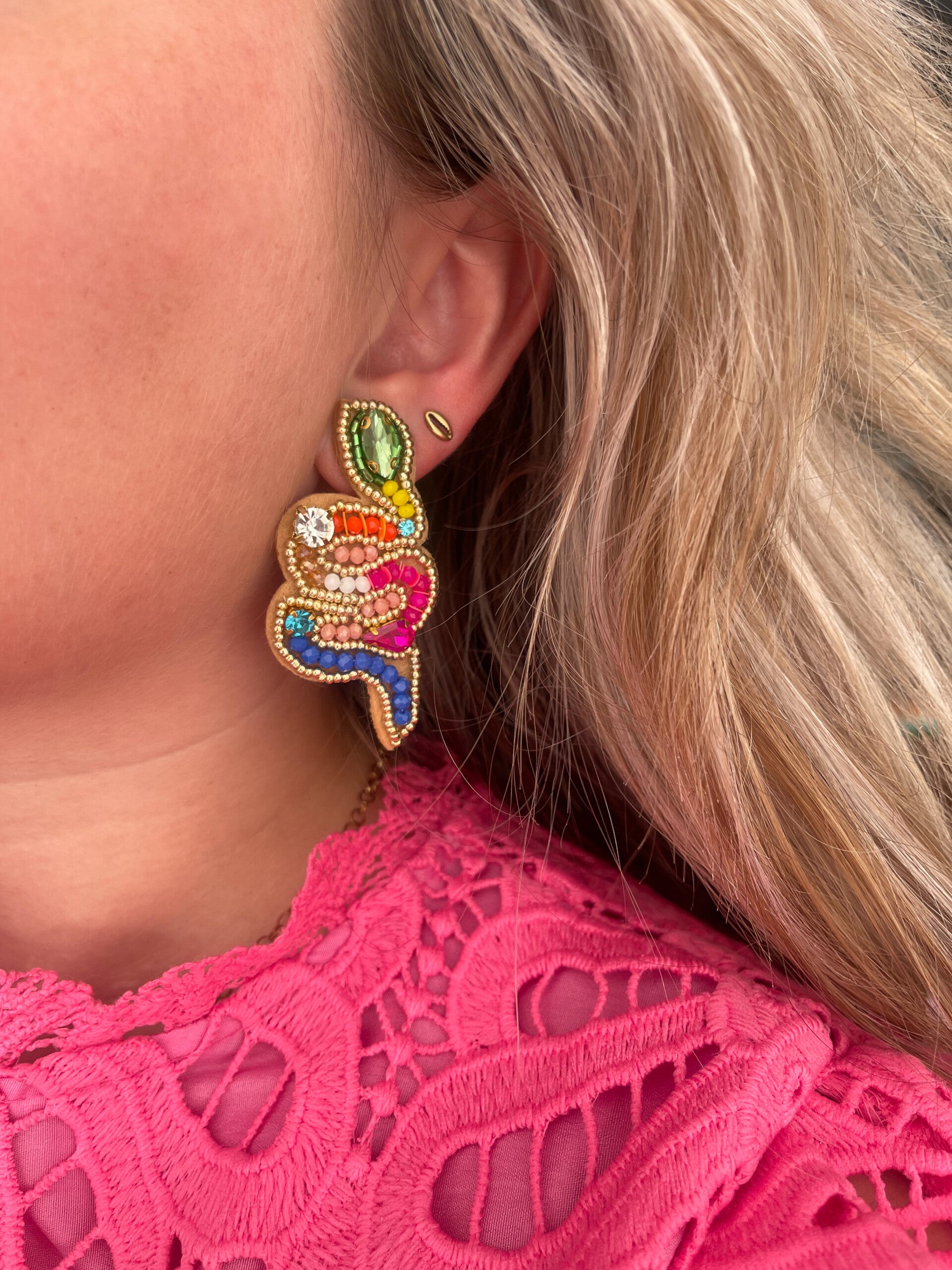 De combinatie van kraaltjes, strass en vrolijke kleuren geeft een handgemaakte boho-touch wat de oorbellen een echte musthave maakt!