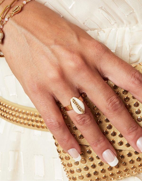Breng het strand naar je vingers met deze prachtige goudkleurige ring met kauri schelp. Perfect voor een zomerse look, maar ook superleuk om je outfit een boho touch te geven – het hele jaar door!