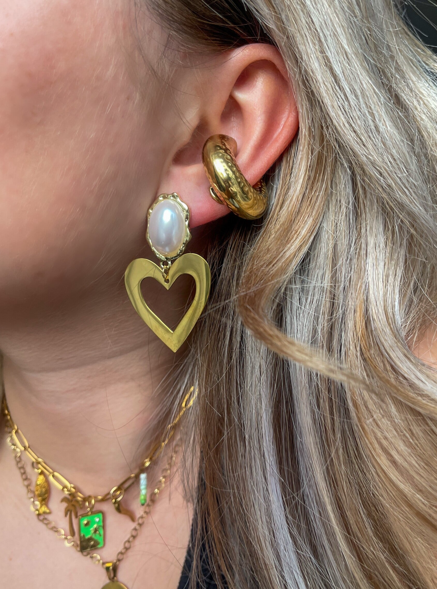 De pearly love oorbellen combineren klassieke charme met een vleugje speelsheid. De parel oorstekers omlijst door een golvende goudkleurige rand zorgt voor een speelse klassieke look.