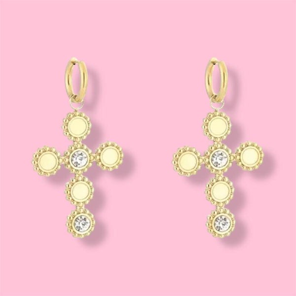 Geef je look een vleugje speelse glamour met de Twinkle cross hoops! Deze prachtige gouden oorbellen hebben een uniek kruisontwerp opgebouwd uit ronde, bolletjes-omrande schakels. Twee sprankelende kristallen voegen net dat beetje extra schittering toe, terwijl de subtiele gouden rondjes zorgen voor een speels contrast. De oorbellen hangen aan elegante mini hoops, waardoor je de hangers er ook af kunt halen en kunt switchen naar een basic hoop. Zo kun jij de oorbellen op twee manieren stylen!