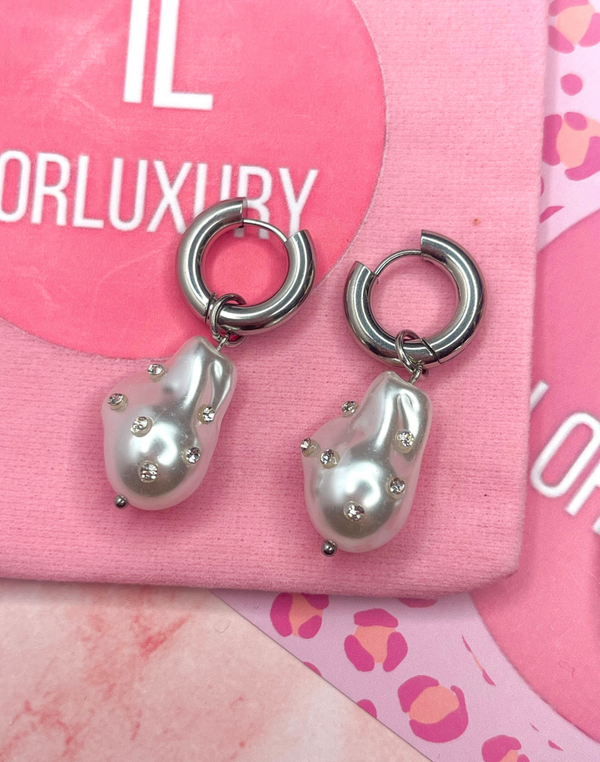 De pearl strass hoops hebben wat kleinere oorringen van formaat maar stralen groot in sfeer. De oorbellen maken een echte statement, de sprankelende steentjes zorgen voor instant sparkle en de speelse parel laat elke outfit nét even luxer aanvoelen. Perfect voor feestjes, datenights of gewoon wanneer jouw look wat extra glam verdient.